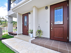 外に面した一階のベランダでは庭の緑と海の青色とのコントラストを眺めることができ、二階では室内にいながらも南国の風を感じることができます。